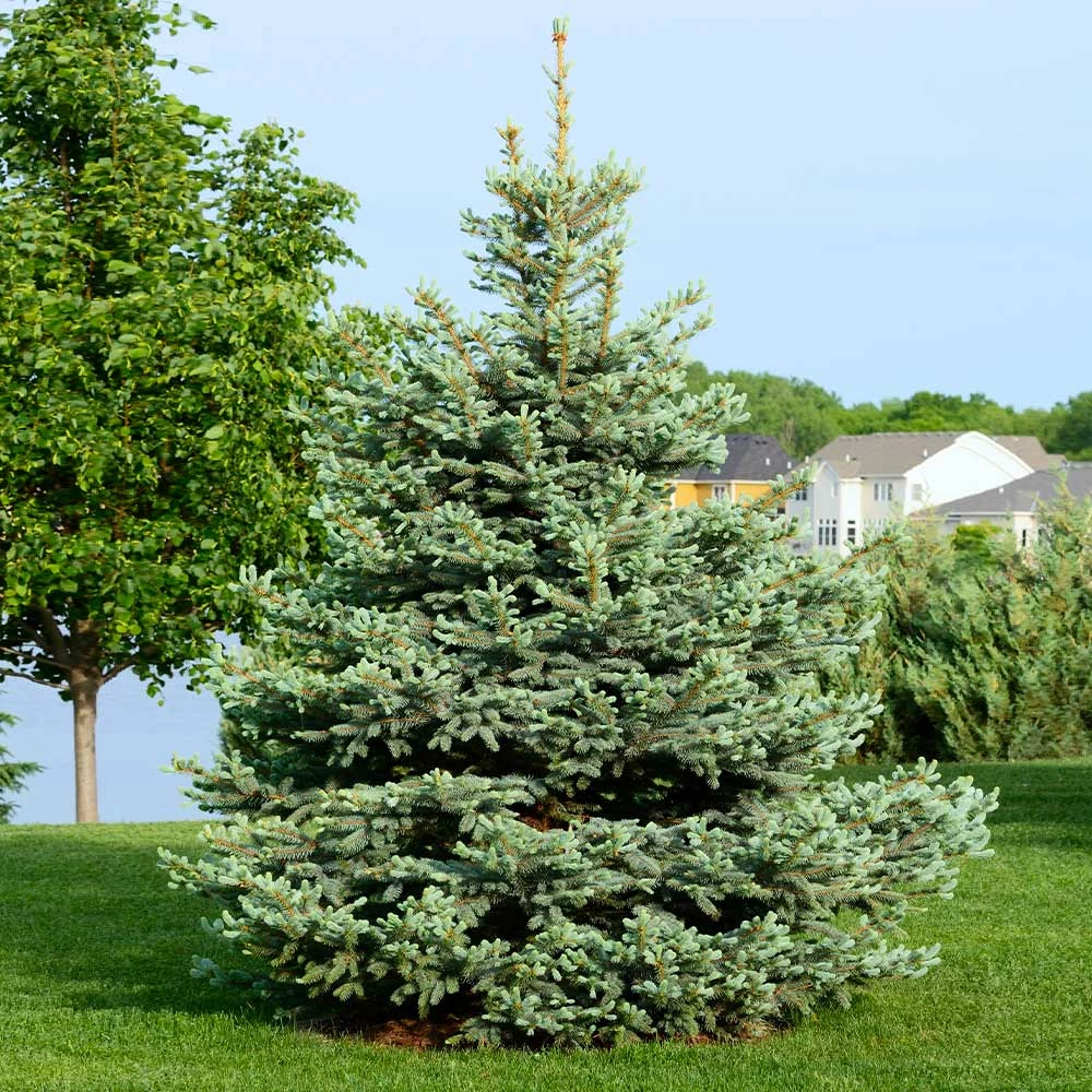 2. Watering: To encourage proper growth, water your newly planted Blue Spruce Trees at least once a week during the first year after planting, until the ground freezes during the winter. More frequent watering may be necessary during the warm summer months to keep the ground adequately moist.