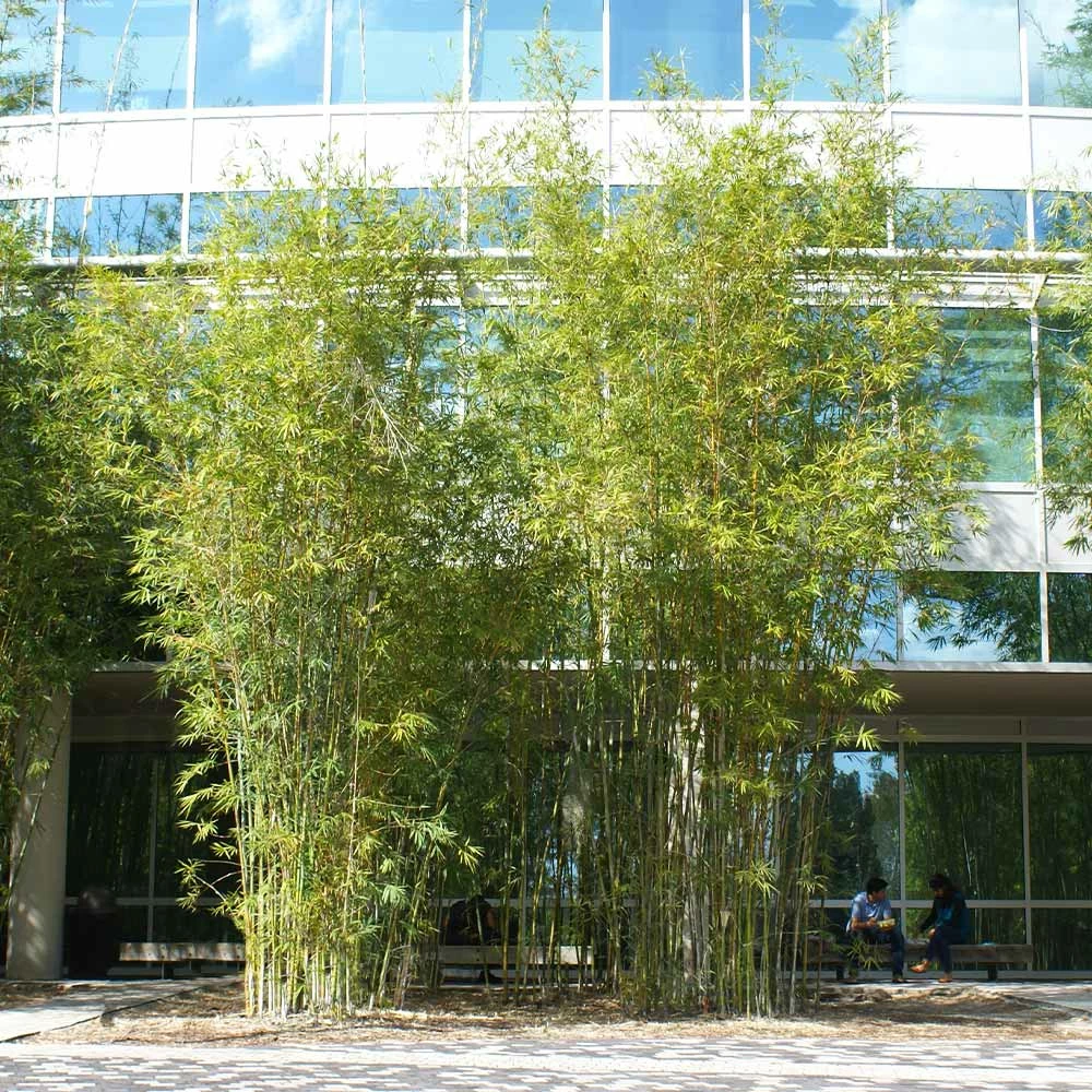 To plant, dig a hole with the same depth as the plant’s container and twice the width. Place the Bamboo plant gently in the hole, then backfill. Be sure to test the sturdiness of the plant once it’s in the ground to make sure winds will not be able to topple it. Water generously and tamp down the surrounding soil.