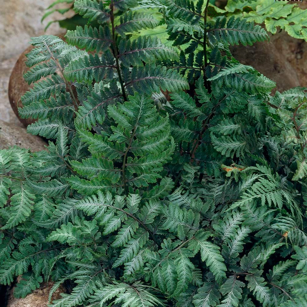 Ready to fill the empty, shaded spaces of your landscaping with a textured plant that thrives in less than sunny areas? The Japanese Painted Fern is a luminescent, silver-green fern that loves the shade and will add instant dimension to your landscape.