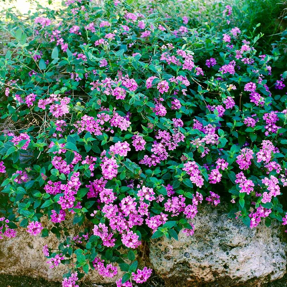 The Purple Lantana is an easygoing, drought tolerant and quick-growing groundcover, so you can plant it up and watch it thrive. Its lower branches are woody to provide ample support, while its upper branches are more vibrant and vine-like, making it charming for planting in a multitude of places.