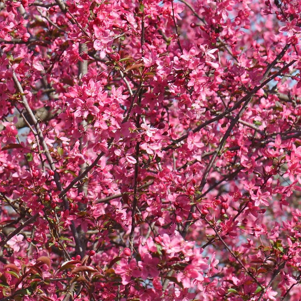 Prairifire Crabapple tree (Malus x ‘Prairifire’) is one of the showiest trees you can plant in your yard. In early spring, when much of the landscape is still winter-drab and summer flowers have yet to make their appearance, you can depend on flowering trees for early-season color. Although it bears tiny cherry-like fruits, which are relished by birds, Prairifire Crabapple is prized more for its stunning spring display of dark-pink to red blossoms.