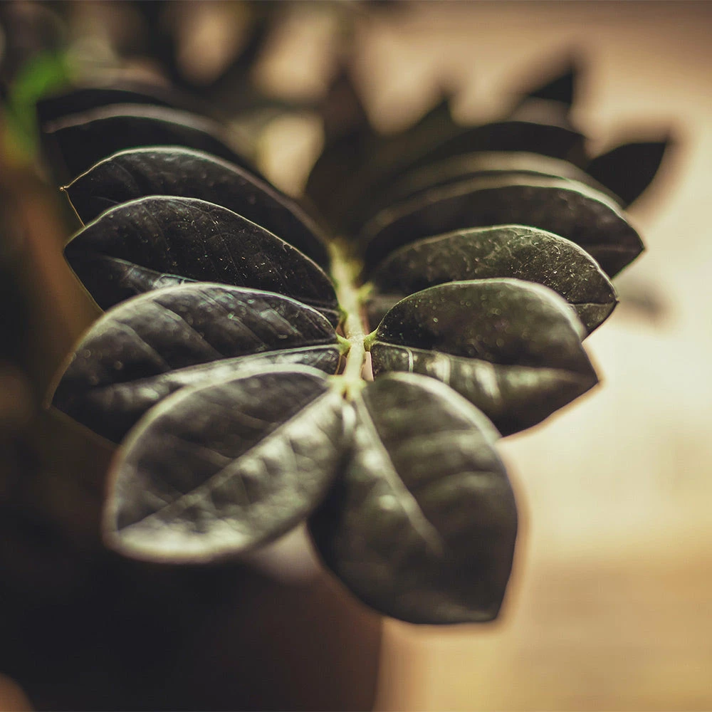 New foliage emerges as bright green before turning into a dark purple, almost black color. Like the green ZZ plant, it has shiny leaves with rounded edges that feel leathery to the touch.