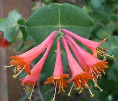 Honeysuckle Vines have oval shaped leaves and small, fragrant flowers that are shaped like either bells or trumpets, and sometimes produce sweet, edible nectar that many people find enjoyable.
